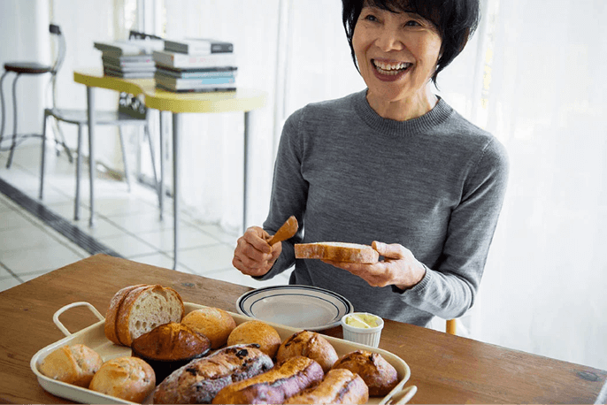 L'Ovenの冷凍パンがあれば、毎日が楽しい! 「おいしい冷凍パンがあったらいいのに」とずっと思っていたので、L'Ovenの冷凍パンを知ったときはとてもうれしかったです。 私はパンが大好きなのですが、一度にたくさんは食べられないので、今までは冷凍していました。 パンをおいしく保存するのは、意外と難しいですよね。 さっそく、L'Ovenのパンを凍ったままオーブントースターで焼いてみたら、びっくりするおいしさでした。 種類もいろいろあって、全体にサイズが小さめなのもとてもよくて、食べたいときに、いつでも焼きたてのパンが食べられることが、とても楽しみになりました。 L'Ovenのパンは、小麦の味がしっかり感じられて、そのまま食べてもおいしいけれど、サンドイッチやオープンサンドにしたり、前菜やサラダなどにも合います。 パンを使ったメニューは、手をかけることを忘れがちになりますが、私はごはんのおかずのようにていねいに作っています。ごはんとパンを分けて考えずに料理してみると、今までと違う新しいおいしさが見つかります。 今のわたしたちの暮らしにあった冷凍パンは、これからますます増えていくと思います。